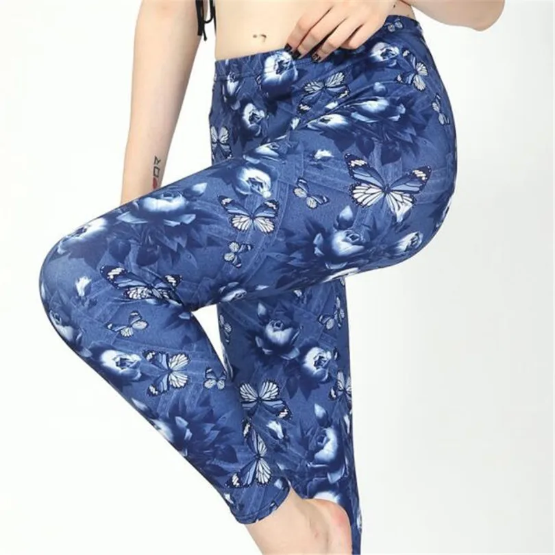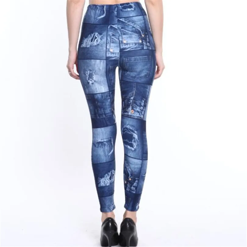 CHSDCSI Summer Printed Legging Workout Pants Elastic High Waist Women Leggins Faux Denim Jeans Leggings Sexy Fitness Legging