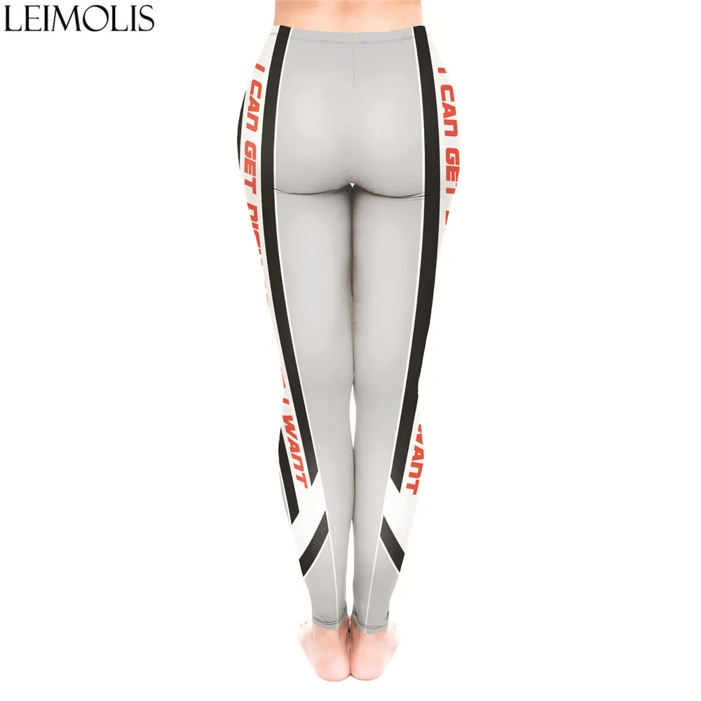 | LEIMOLIS 3D print Striped letter gray fitness push up workout leggings women plus size High Waist punk rock sexy leggins |