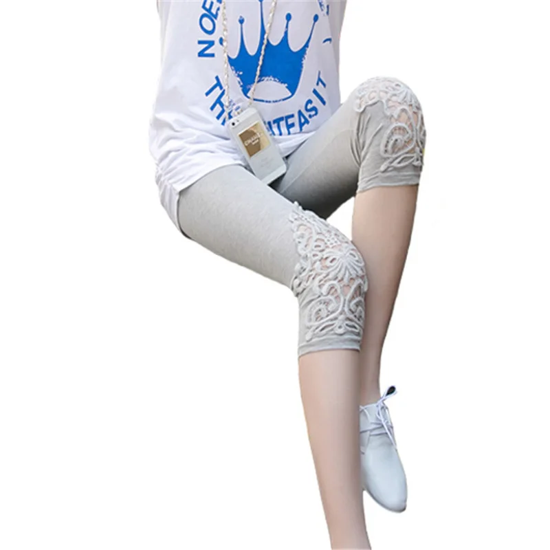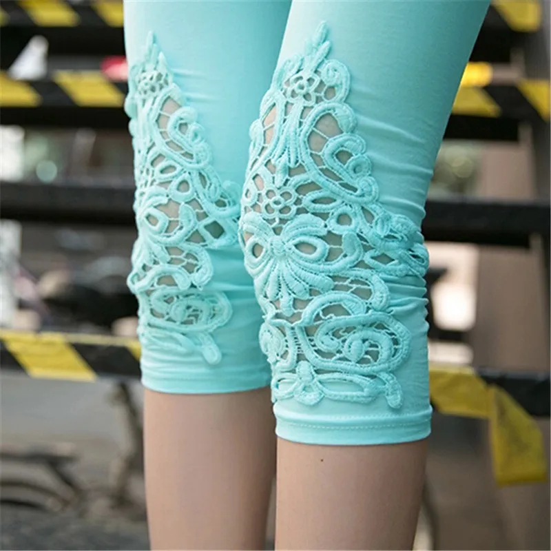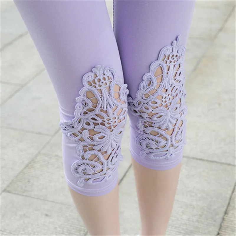 NDUCJSI Women Dance Leggings Hollow Out Carry Buttock Mid Waist Calf Length Female Cotton Fashion Summer Lace Sexy Leggings