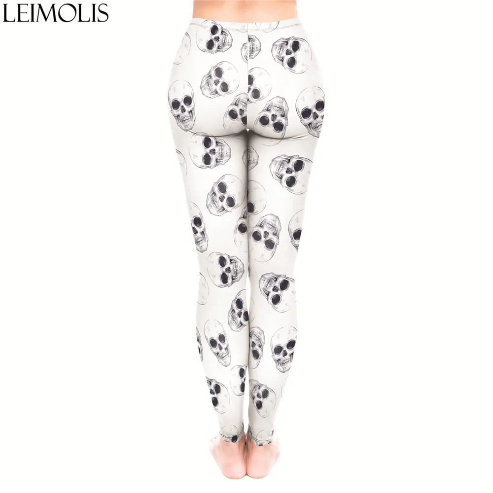 LEIMOLIS 3D print Gothic skull white fitness push up workout leggings women plus size High Waist punk rock sexy leggins