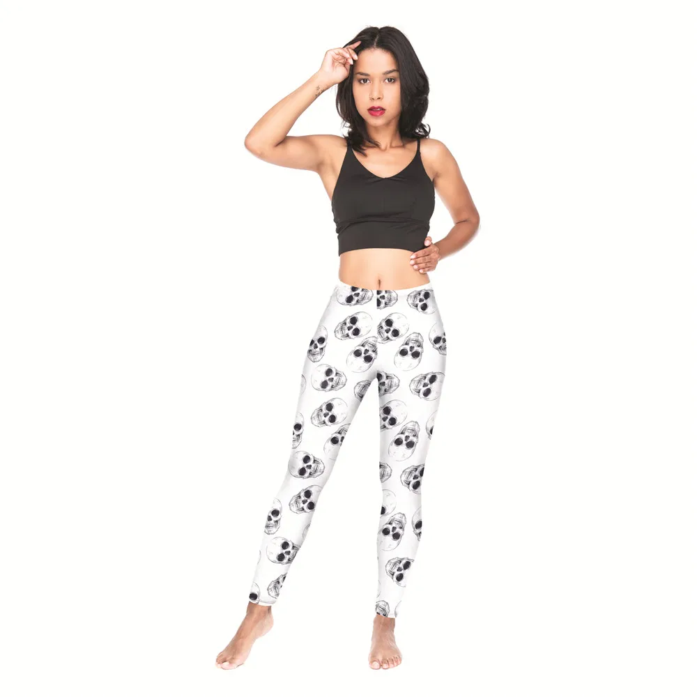 | LEIMOLIS 3D print Gothic skull white fitness push up workout leggings women plus size High Waist punk rock sexy leggins |